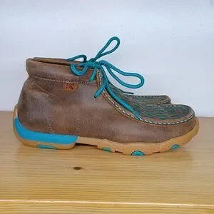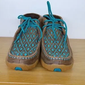 Twisted X Boots Chukka Driving Moccasin Brown Turquoise Diamonds Women's 6.5 M