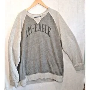 American Eagle Outfitters Mens XXL Grey Raglan AM-EAGLE Graphic Sweatshirt XXL