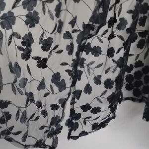 Elegant black sheer kimono with floral design. Perfect for layering.
