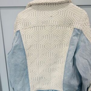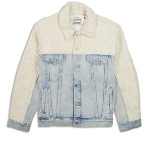 This incredibly special Oversized Type III Trucker Jacket features fabric from the storied Parisian house Malhia Kent. Inspired by Moroccan wedding blankets, this knit has a hint of shine and distinct pattern that's sure to get noticed. And it's crafted with organic cotton.