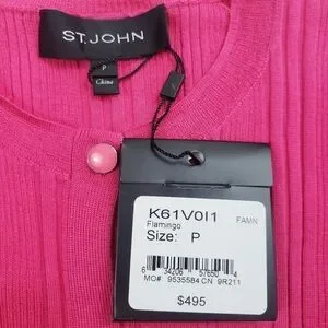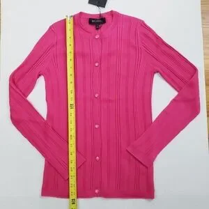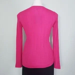 NWT St. John Super Fine Wool & Silk Ribbed Cardigan Flamingo