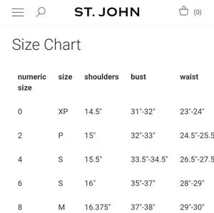 Size - P (2) - see attached St John size chart