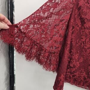 Modcloth Burgundy Through the Bluebells Lace Bell Sleeve Blouse Women's S