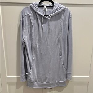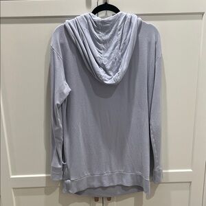 Soft and cozy hoodie with a relaxed fit. Features a drawstring hood, front pockets and vertical zippered access for easy nursing
