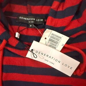 NWT Generation Love Red Navy Striped Hooded Knit Top Hoodie Tee M