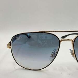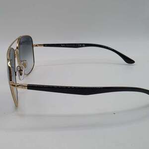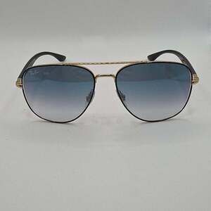 Experience timeless style with these Ray-Ban RB3683 sunglasses, featuring a sophisticated black on gold frame with cool blue gradient lenses. The iconic aviator silhouette is perfect for both men and women, offering a sleek and fashionable look. Made with high-quality materials, these sunglasses provide excellent sun protection and durability. This pair was a display from an eye doctor's office. If they have been handled by people on a daily basis, in excellent condition with no visible scratches or damage. Comes with hard case only.
