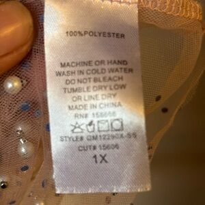 Elegant sheer pink top with sparkling bead details. Perfect for layering.