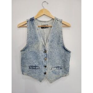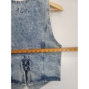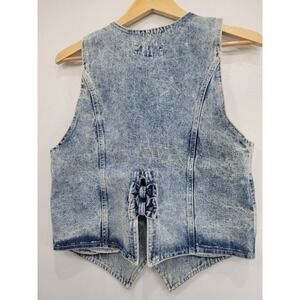Pinot Noir Vintage 80s Acid Wash Denim Vest Blue Cotton Back Bows Womens Medium