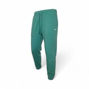 Mens NikeLab Solo Swoosh Fleece Pants in a rich green colorway. These athletic pants feature a comfortable fleece lining, perfect for casual wear or workouts. They include a drawstring waist, ribbed cuffs, and the iconic Nike Swoosh logo subtly embroidered on the thigh. New without tags, offering both style and comfort for everyday wear.