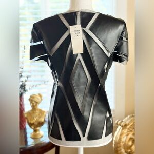 Stylish black and white geometric top for women. Perfect for a modern and chic look.