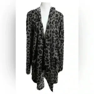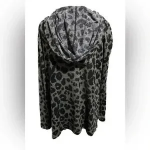 Jodifl leopard print open front cardigan with hood and pockets size medium