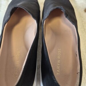 These Taryn Rose Owen Sneakers in black are a stylish and comfortable choice for women. These size 6.5 slip-on flats feature a round toe shape, solid pattern, and a stretch knit fabric type for a modern look. With a focus on comfort and support, these shoes are designed for various occasions such as travel, activewear, casual outings, and workwear. The rubber outsole provides durability, while the leather insole adds a touch of luxury. Ideal for the summer, fall, and spring seasons, these sneakers offer a minimalist yet designer feel for the fashion-forward woman. EXCELLENT USED CONDITION!