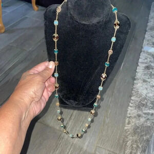 Vintage beaded gold tone layering necklace ,
