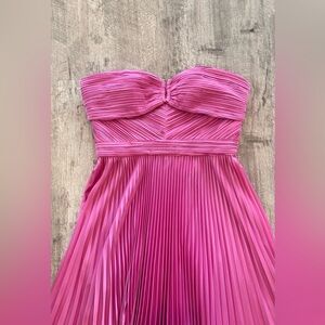 AMUR Harden Strapless Pleated Pink Midi Dress NWT Retail $600, Spring 2026.