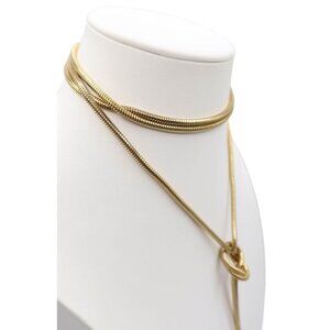 • Vintage Wrap Around Knotted Lariat Gold Tone Claspless Necklace w/ Black Finials
