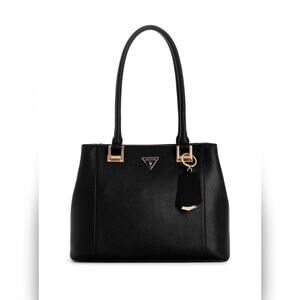 Sophisticated meets street style. This NWT Guess Breana Satchel features a sleek, structured silhouette with polished gold-tone hardware and the iconic logo bag charm. The ultimate "power bag" for the woman who needs to transition seamlessly from a corporate morning to a downtown evening.