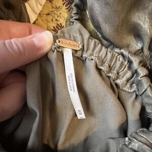 Free People Cassidy Romper silky smocked w balloon sleeves piratecore size M