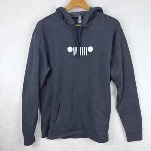Jeep Hoodie Catch A Wave Graphic Logo Spell out Heather Navy Large