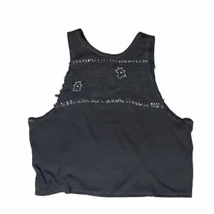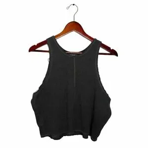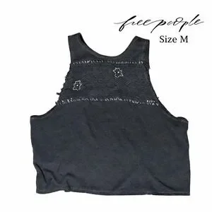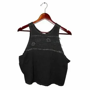 Free People We The Free Charcoal Grey Lace Inset Cropped Tank Top Womens Medium