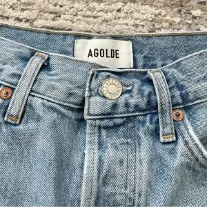 AGOLDE Dame High Waist Mid Length Relaxed Baggy Denim Shorts Size 25