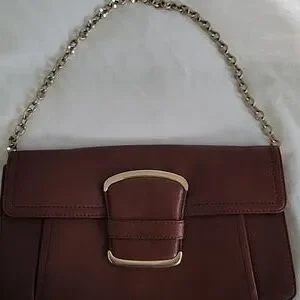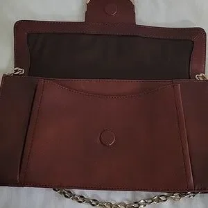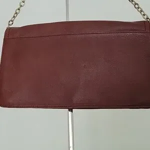 Banana Republic EUC Brown Maroon Chain Leather Shoulder Bag Clutch Flap Closure