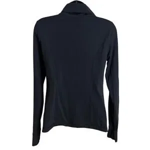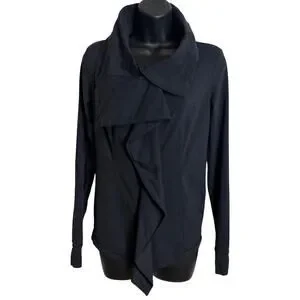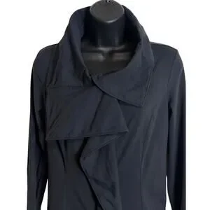 Lucy Women Small Black Zip Up Jacket Yoga Asymmetrical Drape Collar Athleisure