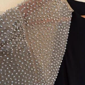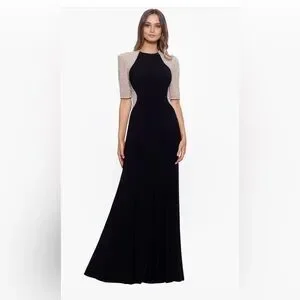Xscape Black gown with Silver beaded sleeves
