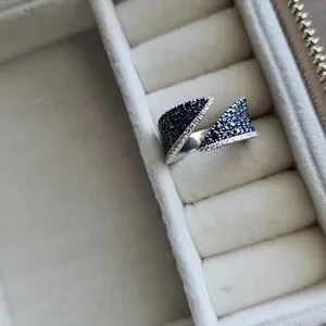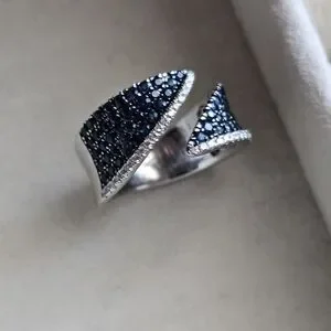 14kt white gold Gabriel&Co bypass ring. Approx 1.25ct in natural blue sapphires(missing 2 , see image) and .20ct in natural white diamonds. finger size approximately 7.