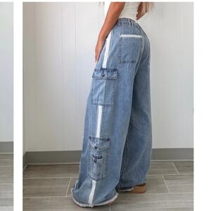 NWOT POL lace trim cargo jeans. Functional cargo pockets and wide leg.