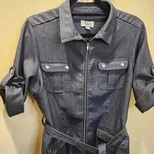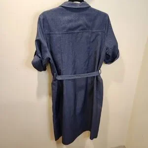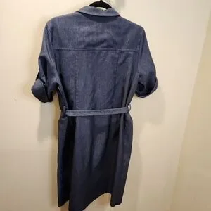Nicci Navy Blue Denim Midi Belted Dress With Pockets Size 14p