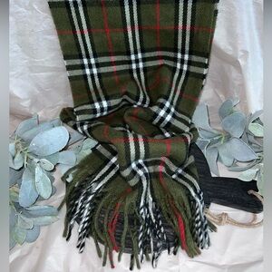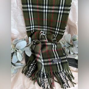 MINT Vintage Burberrys of London Lambswool Scarf Olive Green Nova Check
