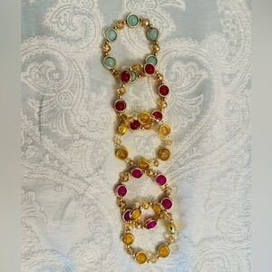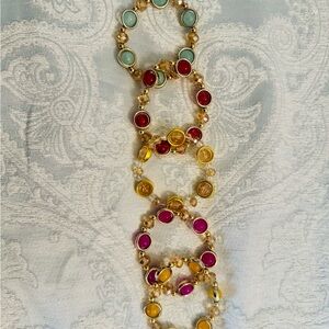 Elevate your style with this elegant bracelet available in multiple colors. Featuring vibrant pink, blue, yellow, and white in gold setting. These bracelets add a touch of sophistication to any outfit. Stack or wear individually. Price is for 1 bracelet.