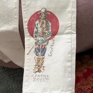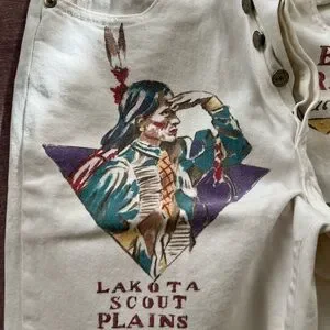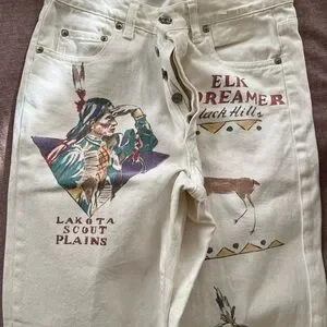 white denim jeans with unique Native American designs #denim