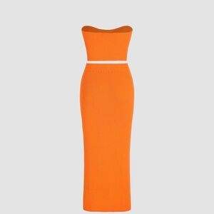 Bold orange knit skirt set. Strapless top with matching long skirt. Perfect for a chic look. Like new. Only worn once.