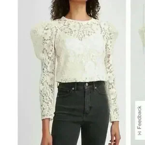 This elegant top will be a gorgeous addition to your closet. Features mock neck, completely sheer lace blouse with an attached cami. New with Tags!