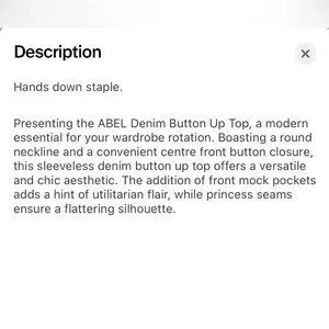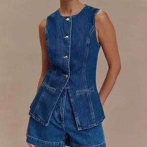 Meshki Abel Denim Dark Blue Button Up Sleeveless Top Sz. M