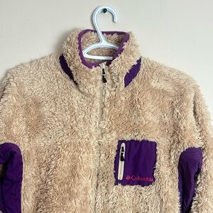 Cozy and stylish Columbia fleece jacket in a beautiful cream and purple color combination. Perfect for layering during fall, winter, and outdoor adventures. Lightweight yet warm, making it great for hiking, travel, or everyday casual wear.