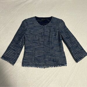 Lafayette 148 women’s 6 blue fringe trim zip front blazer jacket business casual