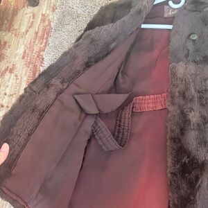 Elegant brown faux fur coat. Perfect for adding a touch of luxury to any outfit.