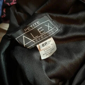 90s vintage beaded chiffon maxi dress by Alex Evenings Petite. Sheer black chiffon with multiple layers creates an asymmetric handkerchief hem. Fully lined except in skirt area. Features a pink & green floral design wrapping around the front, complete with subtle beading/sequins to add sparkle. Sleeveless with a cowl neck and back. So gorgeous for prom or a special event!