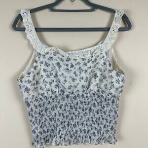Paper Crane floral smocked crop tank top in size Large