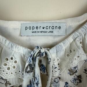 Paper Crane Floral Smocked Lace Trim Crop Top Size L Festival Y2K Fairy Coquette