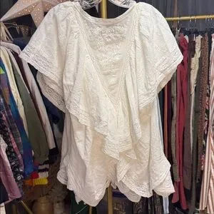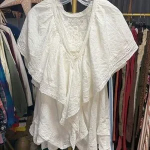 Elegant white blouse with lace details. Flowy and stylish design. Perfect for any occasion.