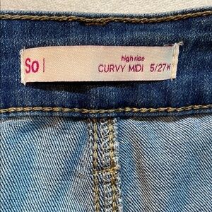 SO Blue Denim Shorts with Distressed Frayed Hem Girls Curvy Midi 5/27 w EUC
