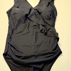 Elegant Black Ruffled One-Piece Swimsuit