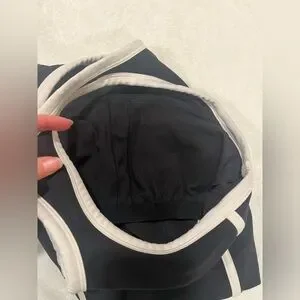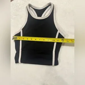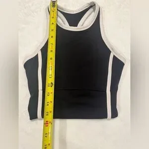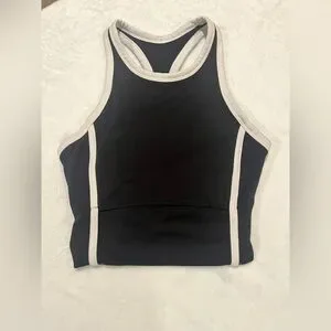 Sporty Black & White High-Neck Cropped Tank Top with Built-in Shelf Bra