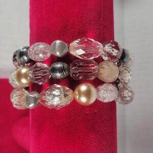 Western Floral Boho Retro Chunky Beaded Stretch Multi-strand Bracelet
