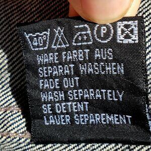 “FADE OUT — WASH SEPARATELY” / German: “FÄRBT AUS — SEPARAT WASCHEN” / French: “LAVER SÉPARÉMENT”