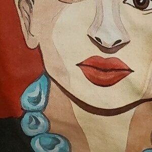 Specialty dry clean because of hand painted portrait on back