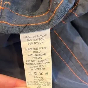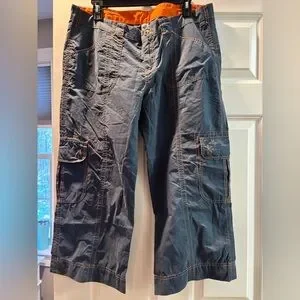 Comfortable blue ankle-length cargo pants. Features multiple pockets and durable stitching. From dog friendly home 9” rise 22” inseam